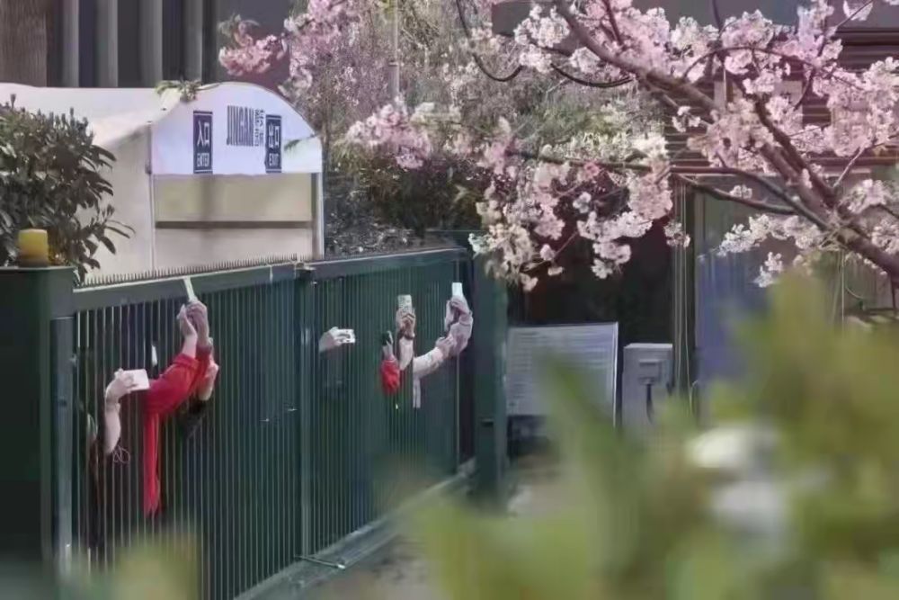 有朋友給記者轉發來了這張照片:“滿園春色”已經開放,暫時被封閉管理的小區里,數只手機“出墻來”。人們不希望春光獨自溜走,于是更加配合地選擇“同向而行”。他轉發后說,“上海還是一個有腔調的地方”。