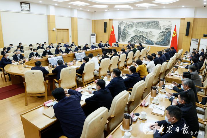 會議采取視頻形式召開,省委常委和有關省領導、省委統籌疫情防控和經濟運行工作領導小組成員單位主要負責同志在主會場參加會議。各市、縣(市、區)設分會場。(大眾日報客戶端記者 劉兵 李子路 攝影 房賢剛)
