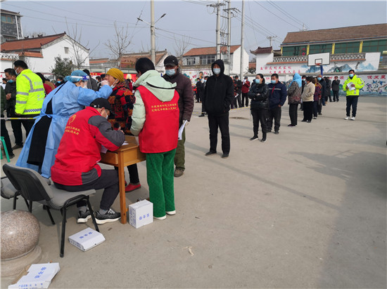 “請大家戴好口罩,有序排隊,注意保持1米間隔,拿好手中的個人二維碼?!?月21日,在定陶區半堤鎮成海村檢測點,成海村新時代文明實踐志愿者們正在引導村民安全有序地開展核酸檢測。