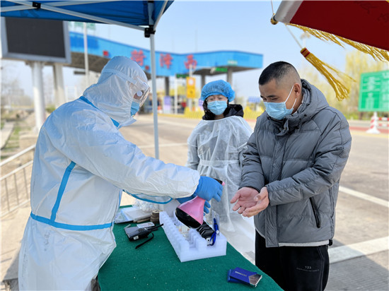 “您好,請佩戴好口罩,給您測個體溫。”“請出示您的健康碼和行程碼。”“請問您從哪里過來,有沒有做核酸檢測?”3月23日 ,在菏寶高速入口菏澤西收費站,菏澤高新區萬福街道辦事處工作人員用手持體溫檢測儀對出入車輛乘員進行體溫檢測,指導他們掃碼,登記相關信息,確認沒有異常后才會放車輛通行。據悉,為全力做好菏寶高速入口進出車輛防疫管控,萬福街道辦事處聯合街道衛生院、公安交警等相關部門,集結機關黨員干部、交警、衛健人員、志愿者等力量,在菏寶高速入口設置了疫情防控便民服務臺,聯防聯控,持續作戰,堅決筑牢“外防輸入”堅實防線,守牢疫情防控“前哨”。記者 王 浩 攝