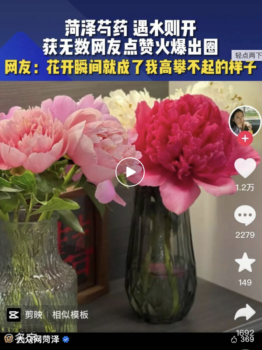 五一前后,菏澤芍藥在互聯網上突然火了起來。前有菏澤小伙在淄博站外3天免費送出3萬支芍藥的視頻在各大平臺刷屏,后有收到芍藥的網友紛紛在短視頻平臺曬圖,“眼尖”的網友也捕獲到了這波流量,紛紛充當氣氛組喊話菏澤芍藥“出圈”,可謂是操碎了心。