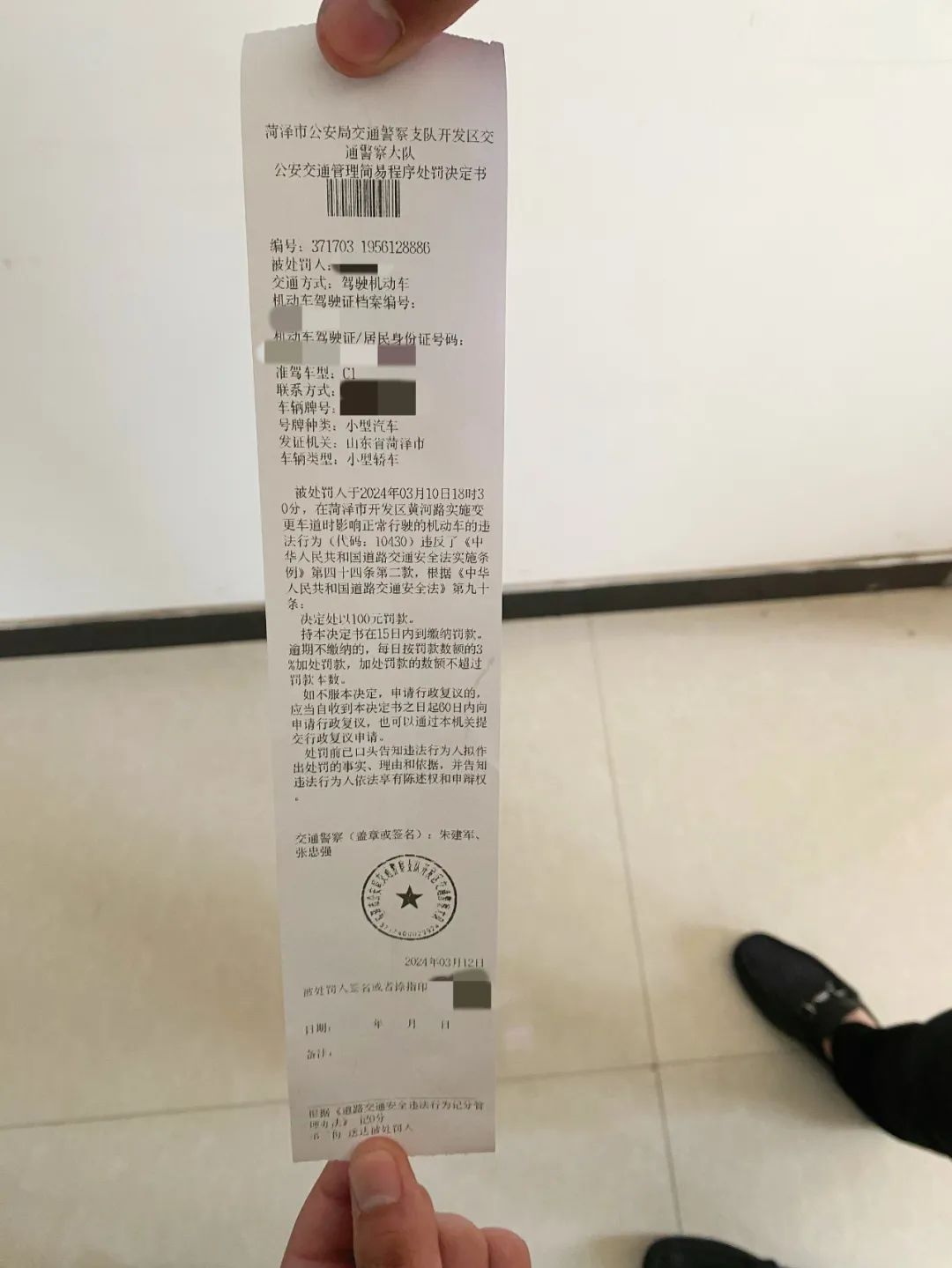 根據(jù)《中華人民共和國(guó)道路交通安全法》第九十條相關(guān)規(guī)定,民警對(duì)駕駛?cè)藦埬衬硨?shí)施變更車(chē)道時(shí)影響相關(guān)車(chē)道內(nèi)正常行駛的機(jī)動(dòng)車(chē)的違法行為處以罰款100元的處罰。