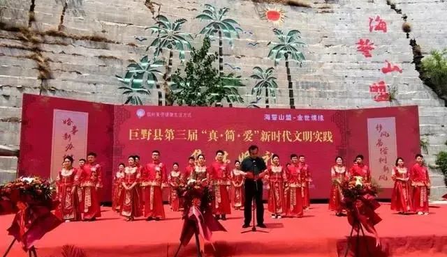 5月20日,巨野縣“真·簡·愛”新時代文明實踐集體婚禮舉行,12對新人喜結連理。