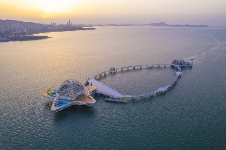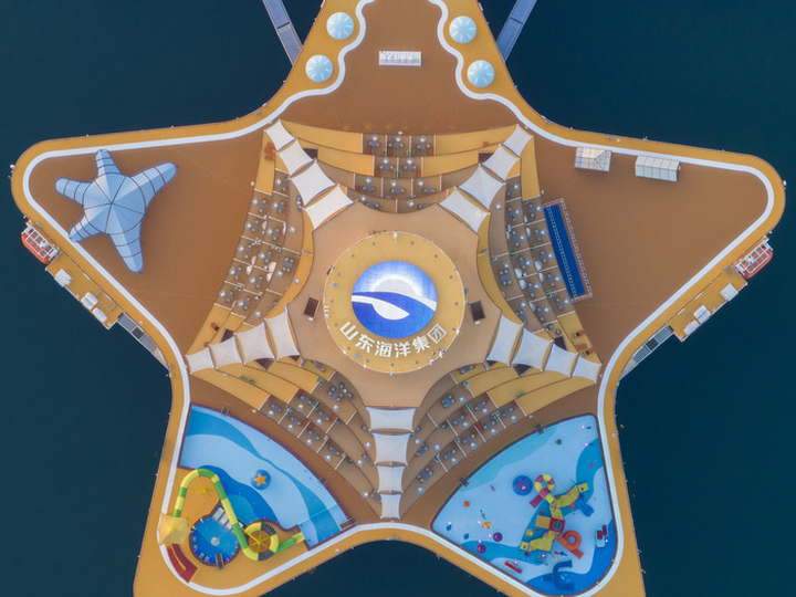 “項鏈”的一頭是花瓣造型的智慧漁場,另一頭是五角星型的綜合體平臺,它們組成了全國首個智能化大型生態海洋牧場綜合體平臺——“耕海1號”現代海洋牧場綜合體平臺。首次集養殖、觀光、休閑、科普于一體,“耕海1號”打造了“藍色糧倉+藍色文旅”發展模式,提升了海洋漁業產品附加值。